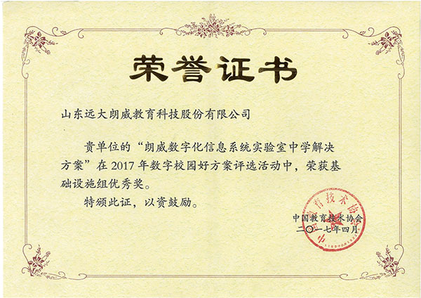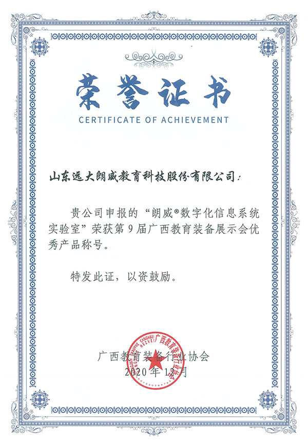 廣西教育裝(zhuāng)備展示會優秀産(chǎn)品證書